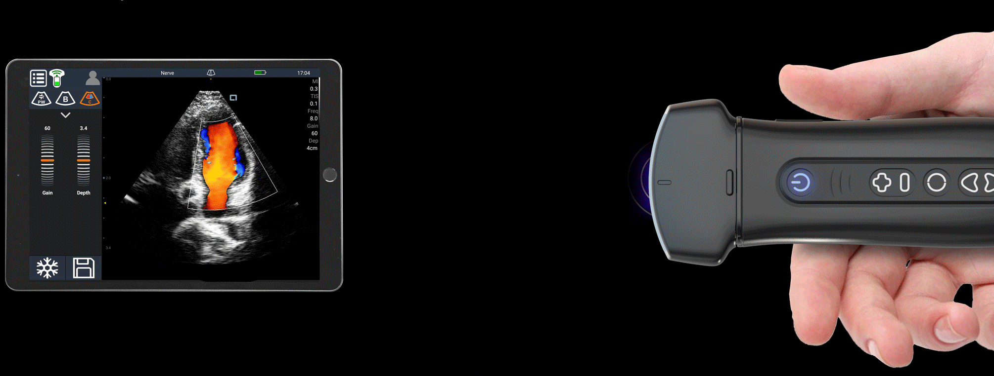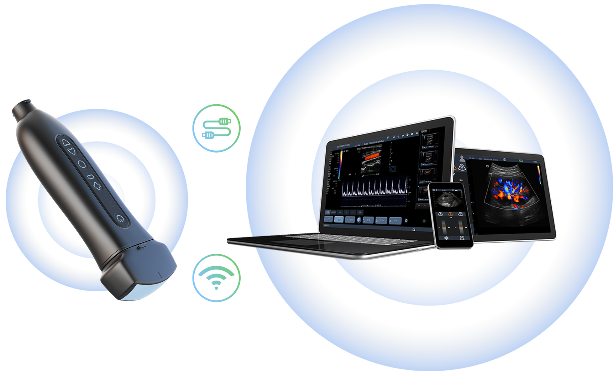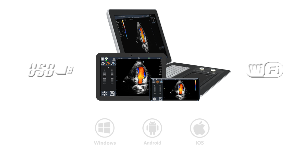 Q7 wireless handheld ultrasound can be freely matched with various display terminals such as computers, tablets, and mobile phones, and is applicable for various application scenarios such as anesthesia, emergency, ICU, outpatient clinic, consultation and field rescue.